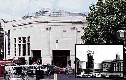 this building was the result of prince charles' remarks in his speech to the riba. he described the original design as a monsrous carbunkle and opened a critical episode in 'english' architecture. |